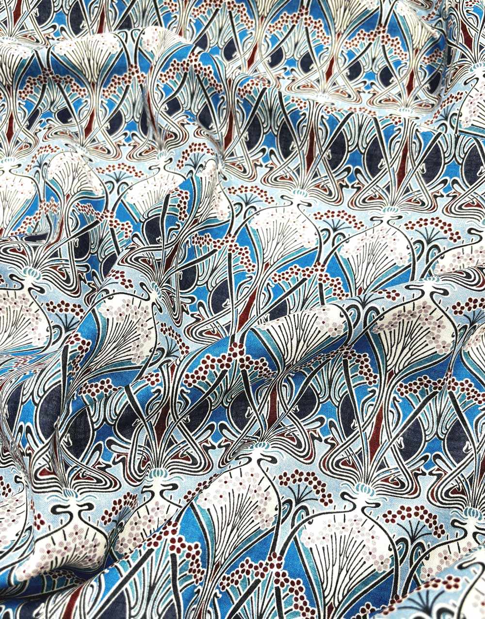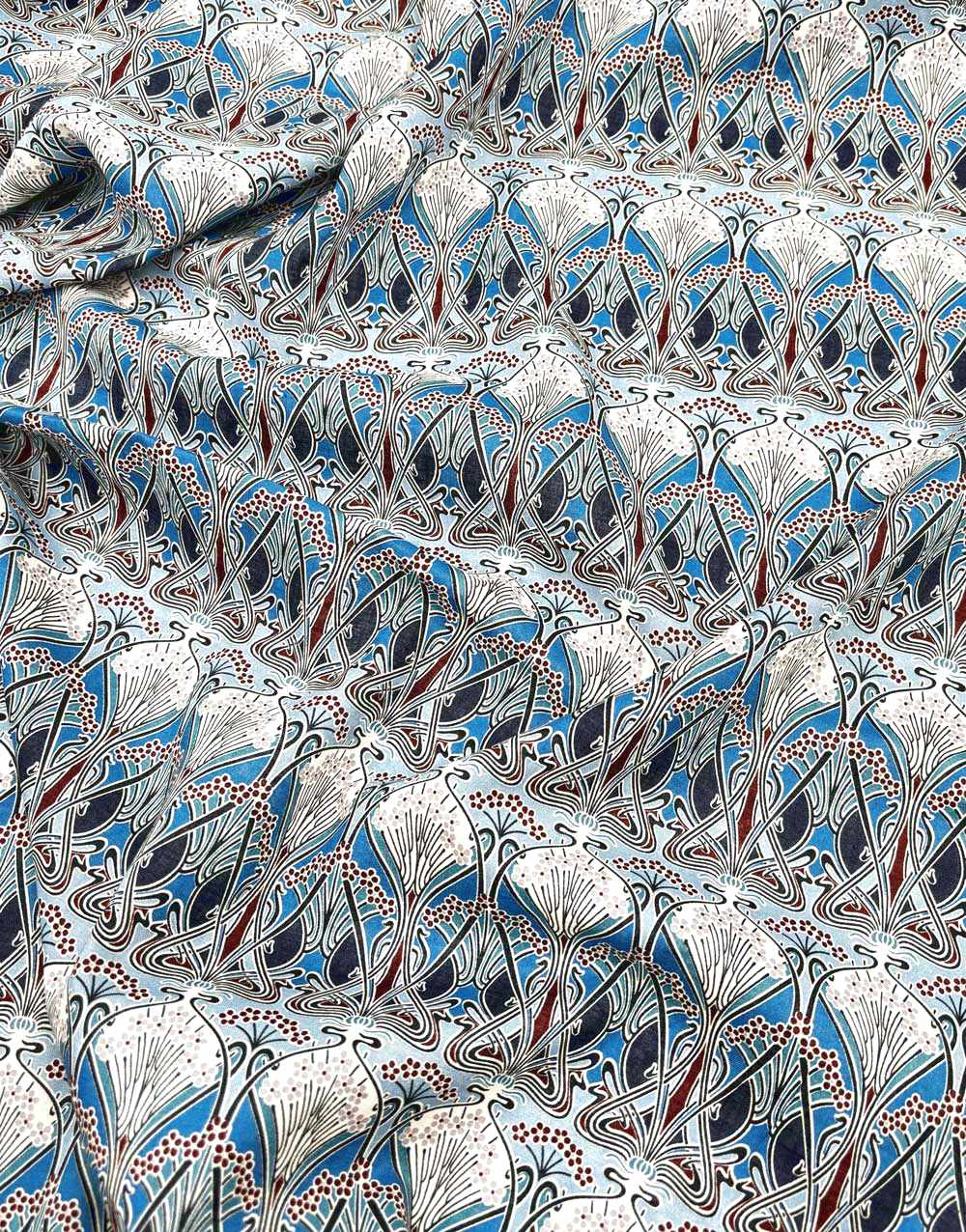 Considered to be Liberty’s most iconic Art Nouveau design, Ianthe was originally created as a wallpaper border by French artist R. Beauclair in c.1902. It was reworked for Liberty by the Haward Studio in 1967 and has appeared in a multitude of different designs and styles ever since.
