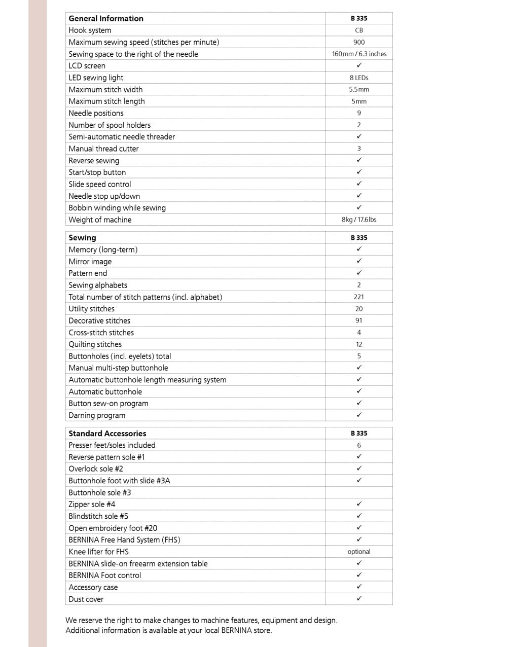 Quality from top to bobbin! The B 335 is full of the latest technology and robust, durable quality ensuring nothing stands in the way of your creativity . . . Read more