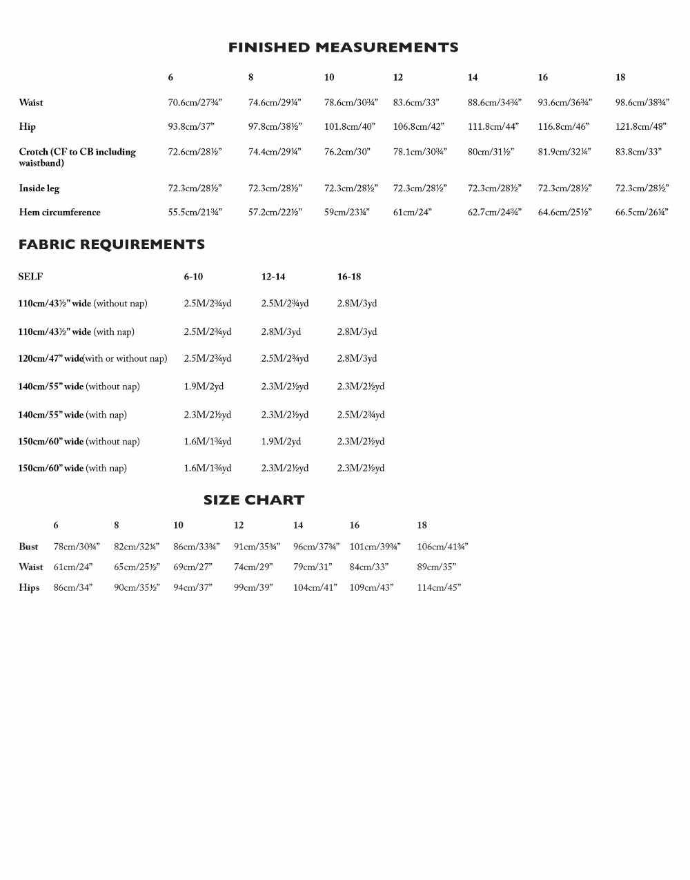 Suggested Fabric: Medium weight woven fabric such as cotton twill, denim, corduroy, light to medium weight woollens and linen.