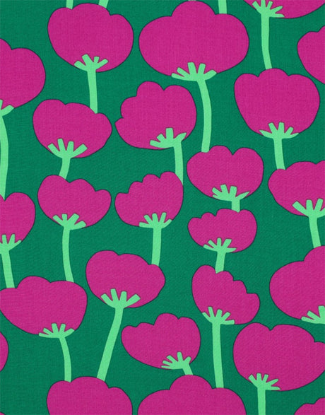 Green & Pink Poppies Lenzing Ecovero Fabric, Nerida Hansen