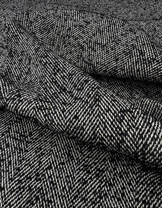 A classic herringbone weave reimagined in a modern monochrome palette, this Light & Lush fabric offers both structure and softness. The textured pattern creates subtle movement across the surface, giving a timeless tailored feel that works beautifully for coats, jackets, and chic outer layers. With its medium weight and gentle drape, it is a versatile choice for projects where durability and style are equally important.
