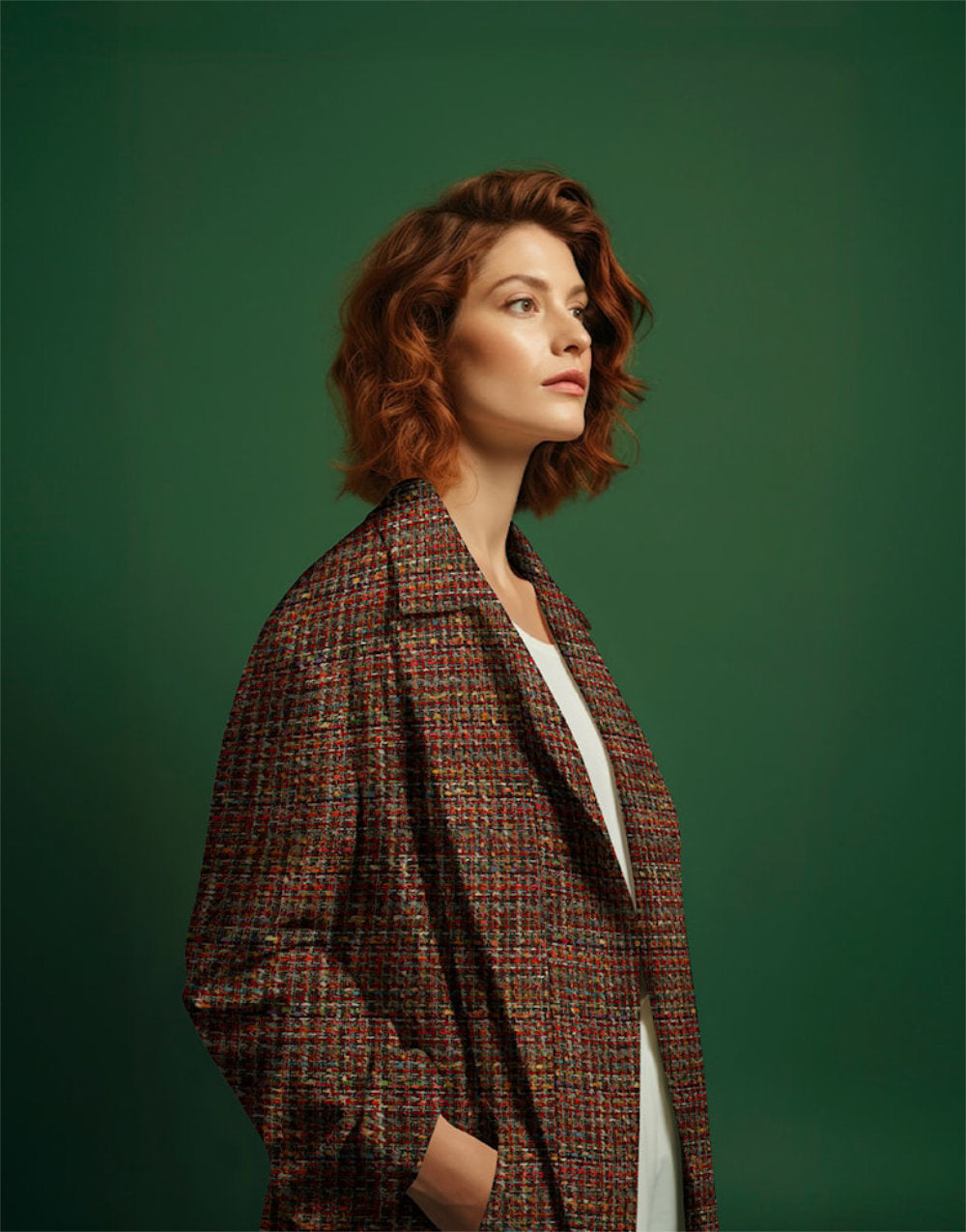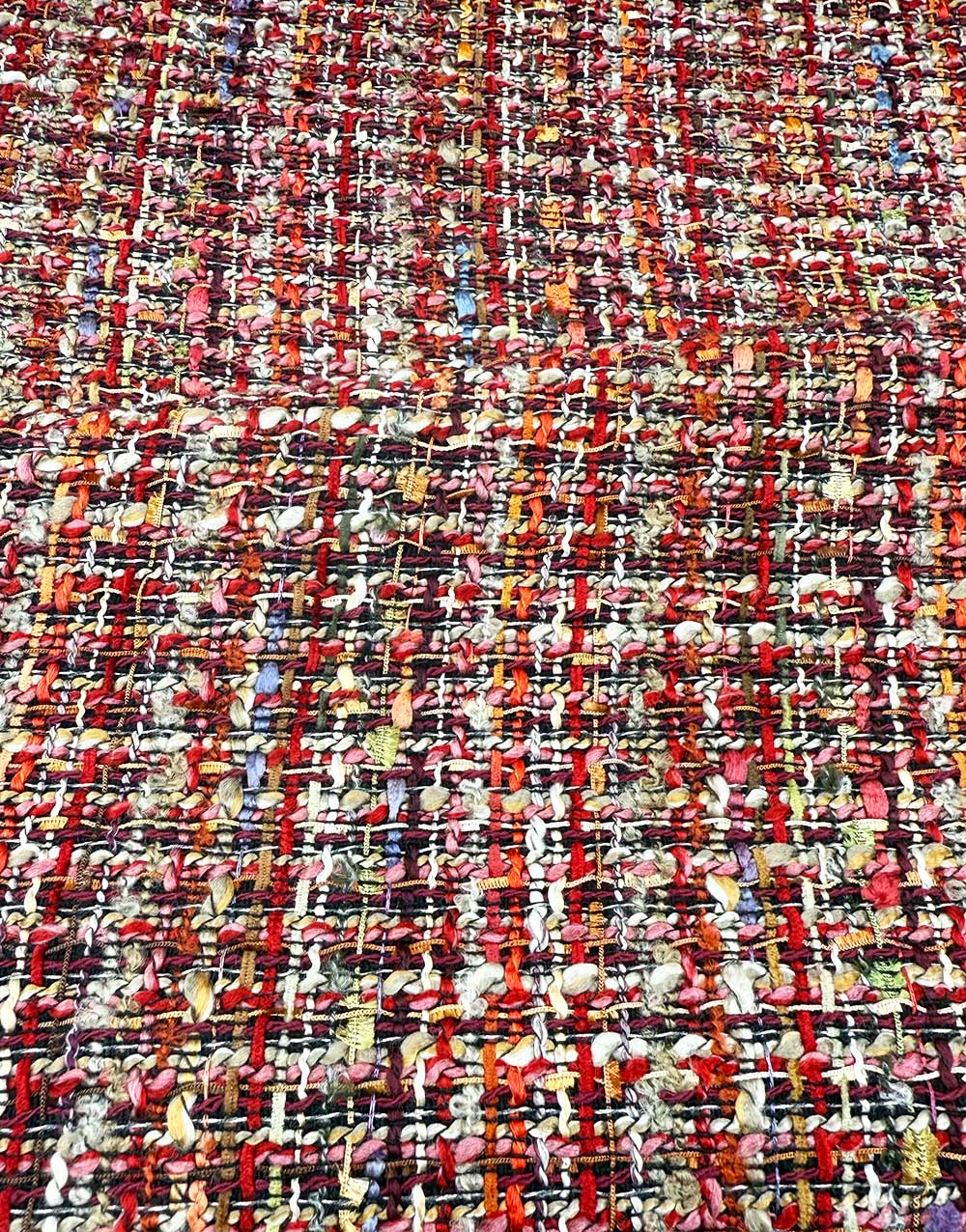 A rich multicoloured woven coating fabric, this Light & Lush design is a joyful mix of red, rust, ochre, and soft greens, interwoven with cooler flecks for balance. The richly textured tweed surface gives it warmth and depth, making it an eye-catching choice for statement jackets, coats, and chic separates.
