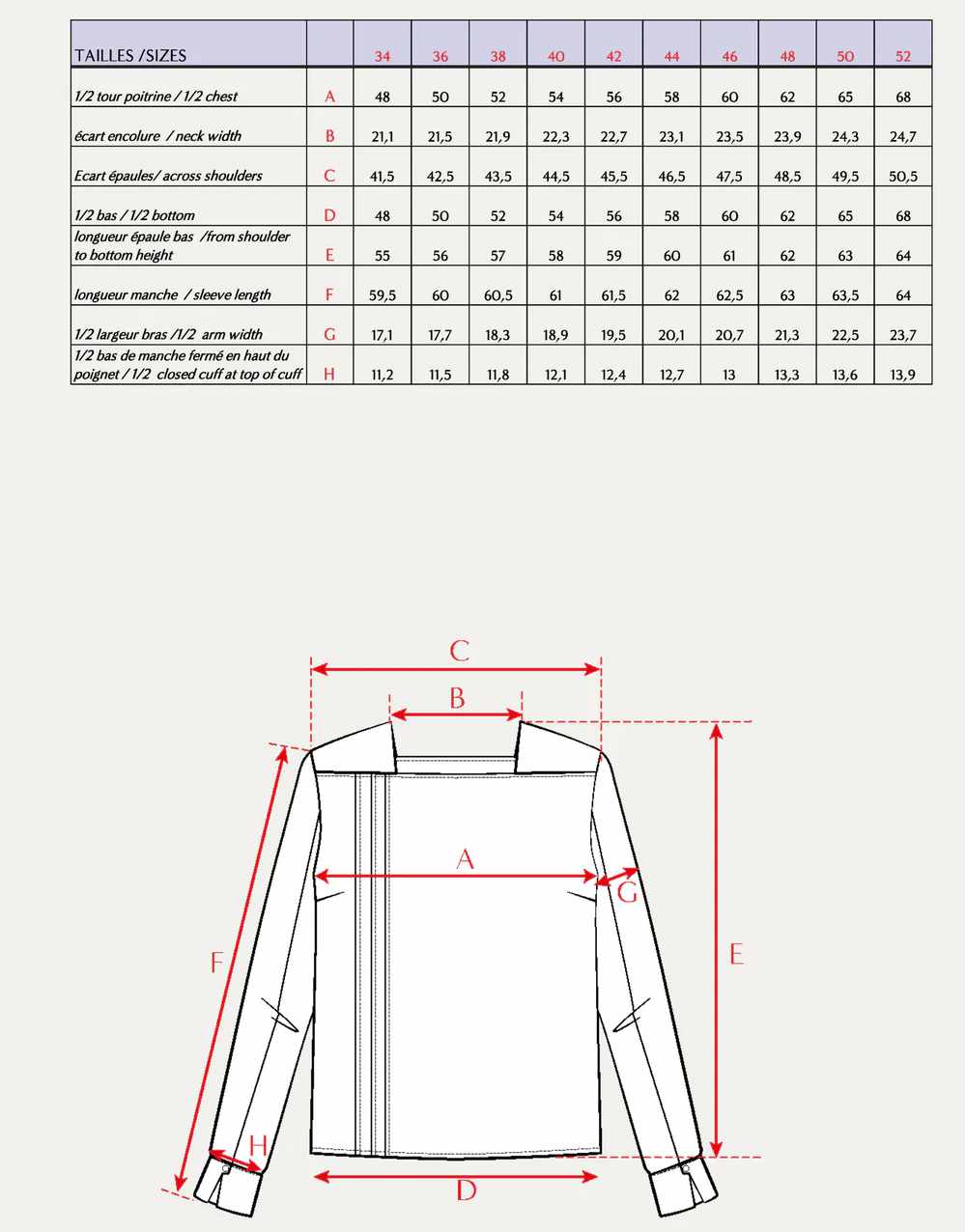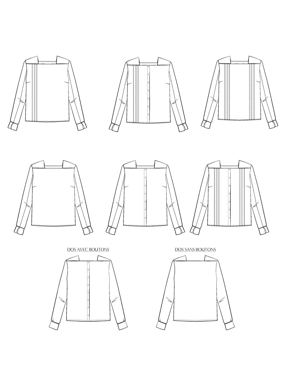 Ability: Intermediate, the technical aspects are sewing stitched pleats, making a button placket, assembling a sleeve in 2 parts, assembling a buttoned cuff. The garment may be easier to sew if you choose a non-buttoned and/or non-pleated version.
