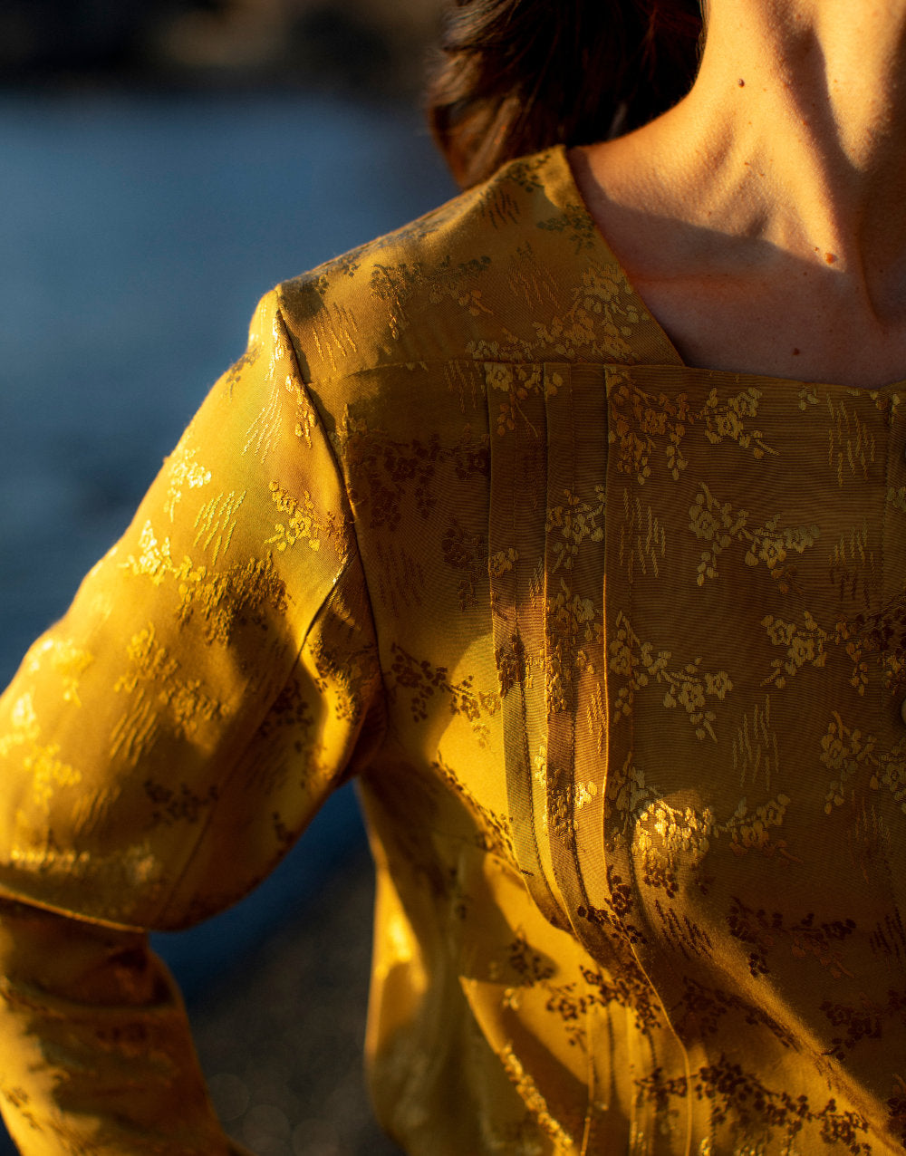 The Déferlante blouse can be worn in so many different ways: with or without buttoning at the front, with or without buttoning at the back, with pleats at the front, without pleats, or with just an embellished side. You'll never tire of reinventing your creations with this beautiful pattern. And the search for details that make all the difference doesn't stop there: the cuff is designed with an opening on the front of the hand, a delight that adds a further touch of elegance to Déferlante.