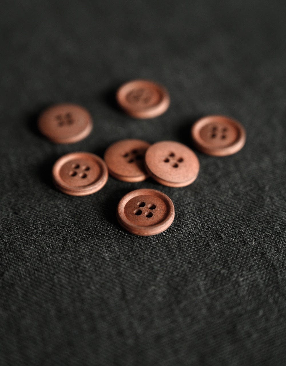 These organic cotton buttons have a beautiful matte and chalky finish, and are the perfect size button for shirts.