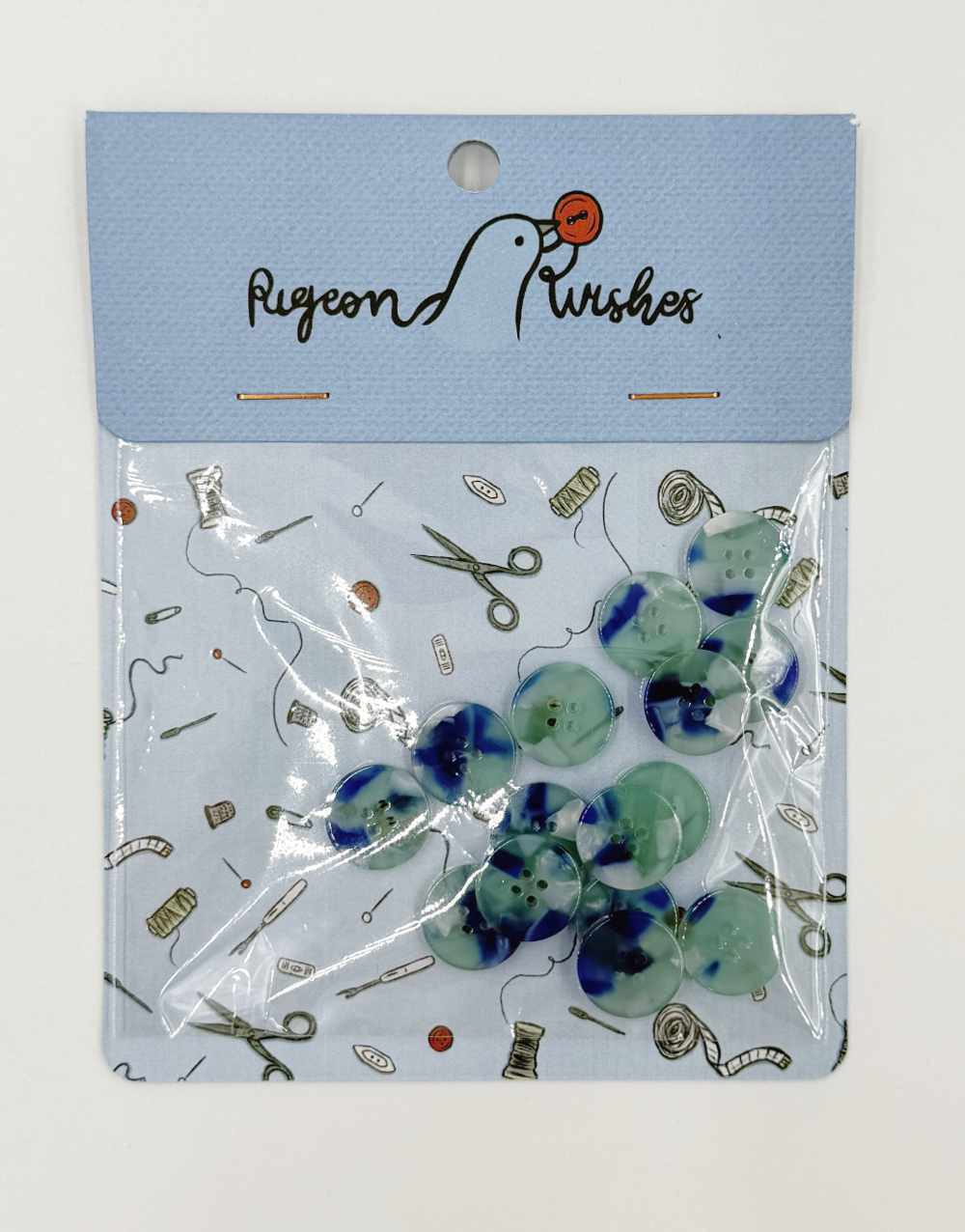 A charming set of 15mm marbled blue shirt buttons, each one completely unique. Perfect for adding a special touch to your handmade garments Read more