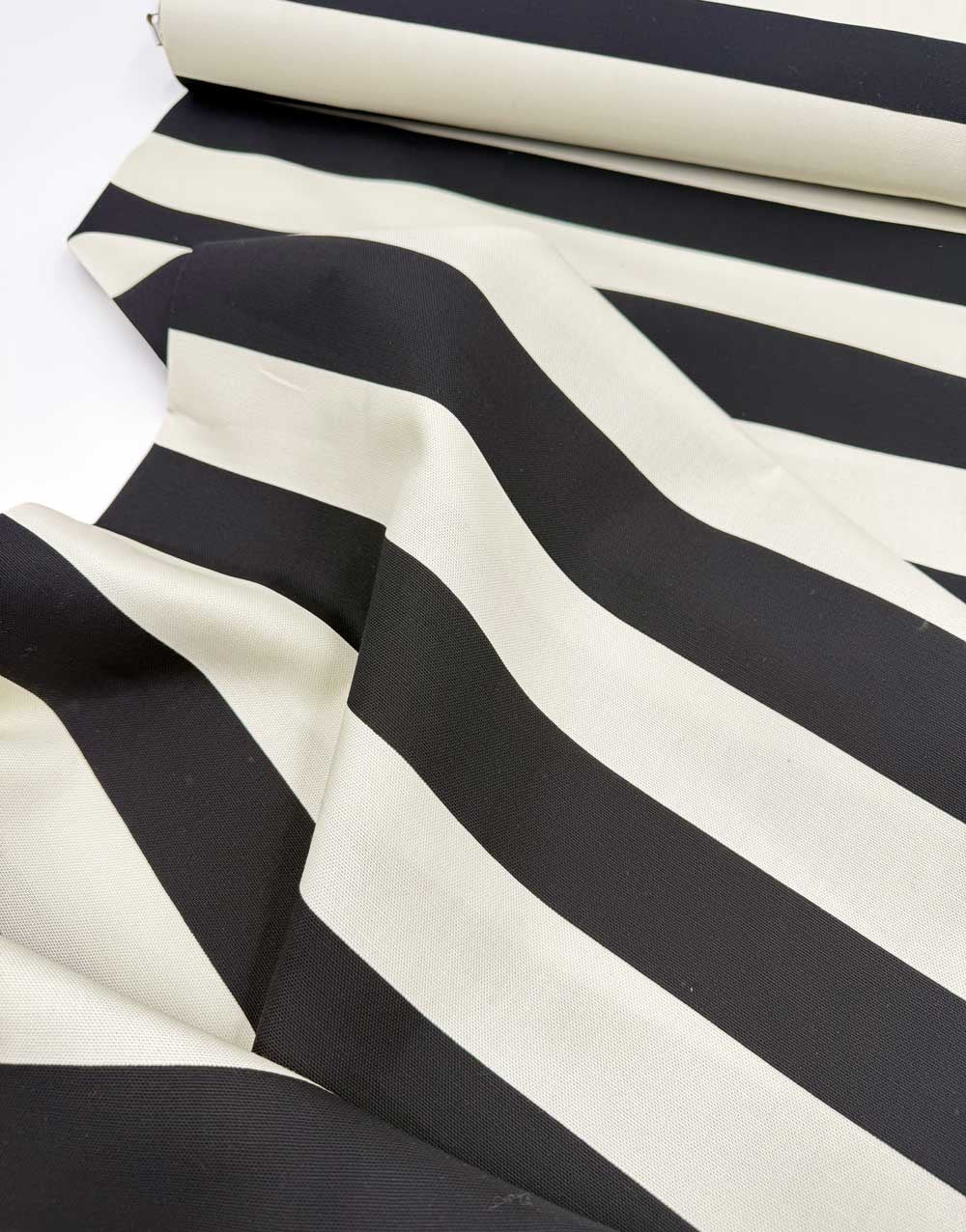 This cotton canvas fabric features bold, thick stripes in a monochrome colour combination, offering a crisp and modern look. With its sturdy yet soft texture, this durable woven fabric is ideal for both fashion and home décor projects.