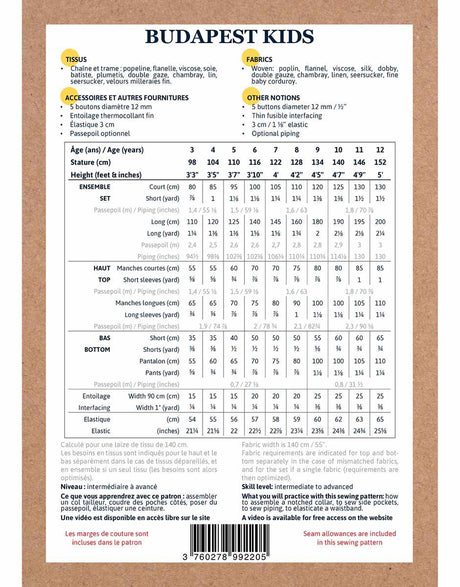 £18.00Unit price /UnavailableBudapest Kid's Pyjama Sewing Pattern (3y - 12y), Ikatee