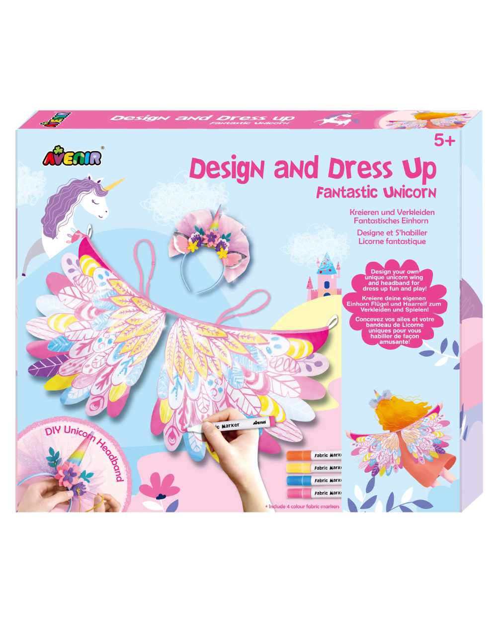 A great and easy way for little artists to create their own themed costumes for dress up fun! The Unicorn Set includes a pre-printed set of wings which can be further decorated with the enclosed markers, plus pre-punched felt, a safe plastic needle and unicorn headgear to decorate. It is all packed inside a reusable storage box too.
