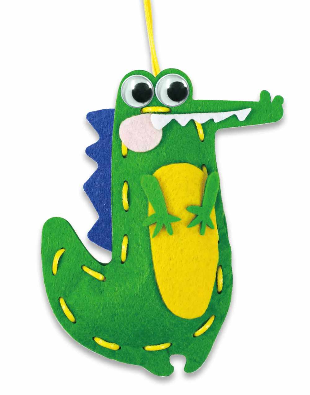 This is a great first stitching project to make 3 adorable animal friends - Lion, Crocodile and Parrot! The thick lacing thread and pre-punched holes make the stitching easier for little hands. When the animals are finished attach them to book bags!