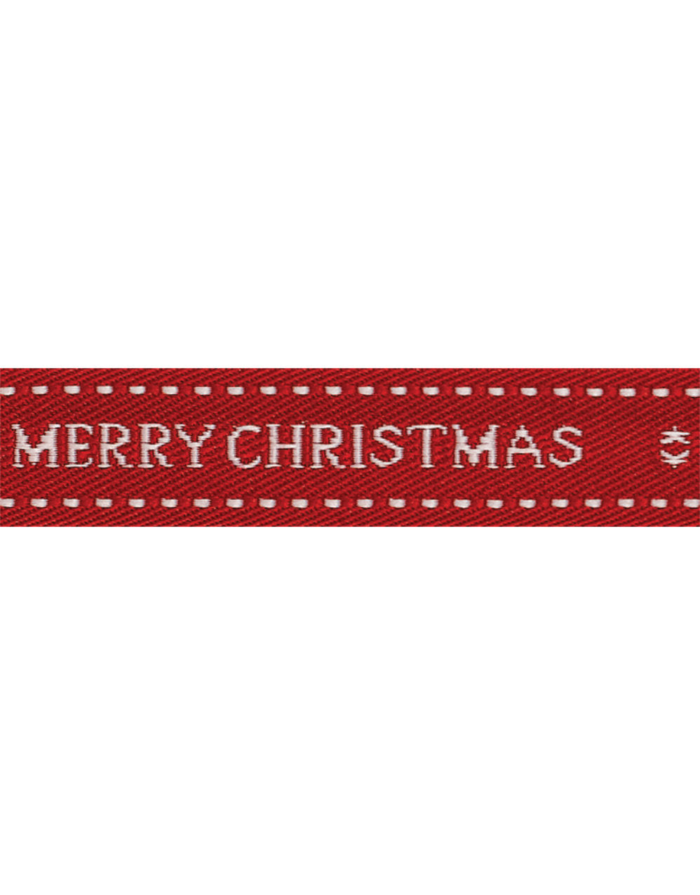 A festive favourite for all your seasonal makes, this natural ribbon features Merry Christmas text in bold red with a stitched border detail. Perfect for adding a traditional finishing touch to gifts, decorations and craft projects.
