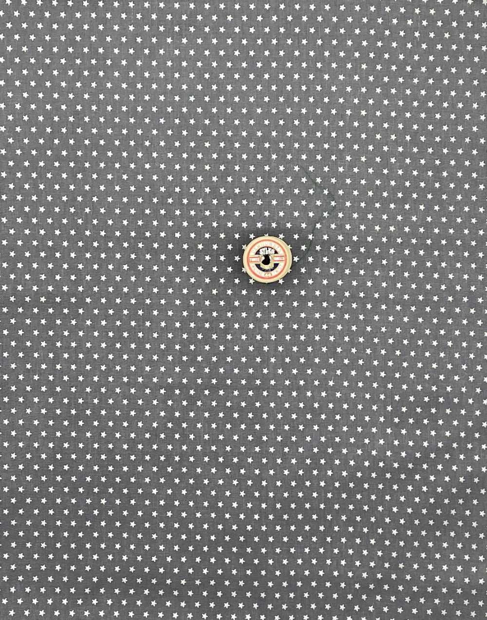 Tiny silver metallic silver stars printed on grey cotton. It's perfect for all your festive accessories and homewares this Christmas.