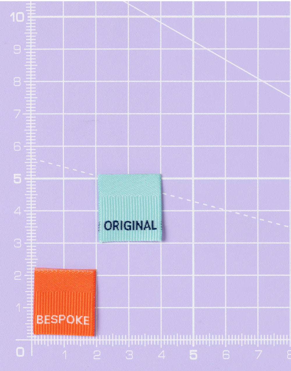 The vibrant orange fabric with white BESPOKE lettering is striking and sure to catch the eye. The fresh green woven label with ORIGINAL in navy blue lettering offers a lovely contrast and highlights the uniqueness of your work.