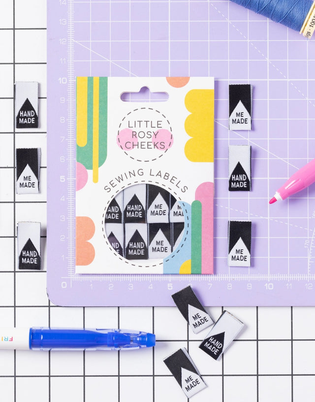 Introducing the Mini Made Collection from Little Rosy Cheeks – a set of tiny monochrome woven sewing labels, perfect for adding a subtle yet stylish finishing touch to your handmade projects. These super cute labels are ideal for stitching into seams and look great on the outside of garments, bags, and more.