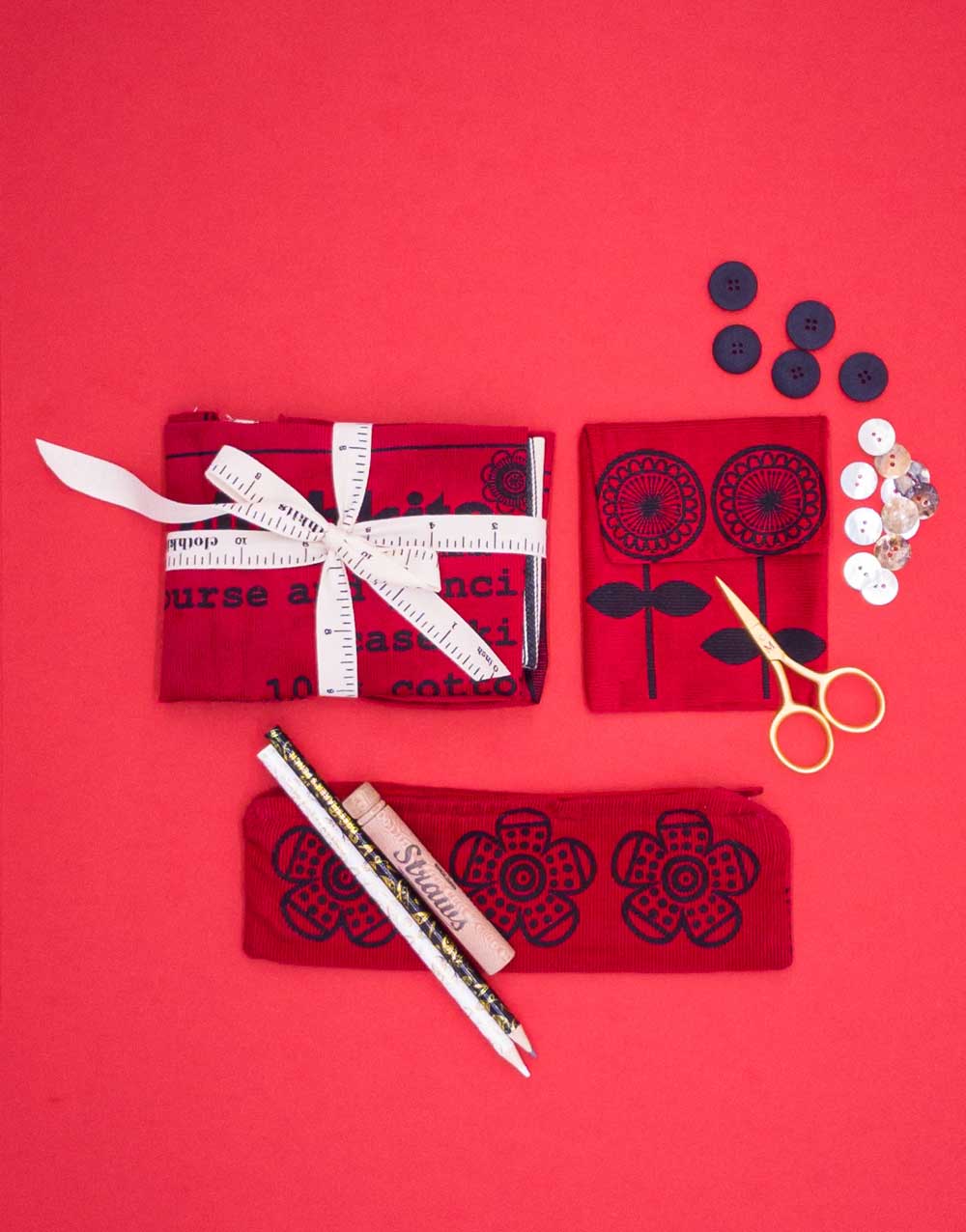 This fab babycord pencil case and purse kit set comes with fabric ready to cut and sew, and all the haberdashery you need to complete the project. It's a great gift idea for young sewists!