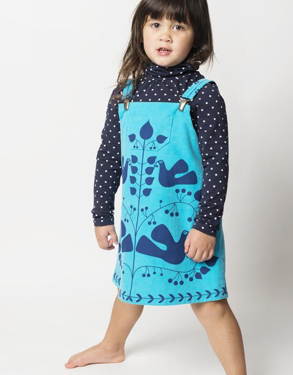 Our original Dove and Cherries design printed in striking indigo on a turquoise fine baby cord. A wardrobe staple all year round, team it up with a top and leggings for a comfortable every day outfit Read more