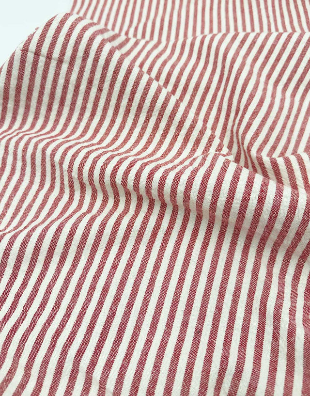 A timeless red and white woven stripe that brings a touch of classic charm to your sewing projects. Soft with a beautifully floppy drape, this organic cotton fabric feels natural and easy to work with, making it perfect for breezy shirts, summer dresses, or relaxed homewares like table linens. The fine stripe and lightweight hand lend it a vintage-inspired simplicity that’s effortlessly wearable.