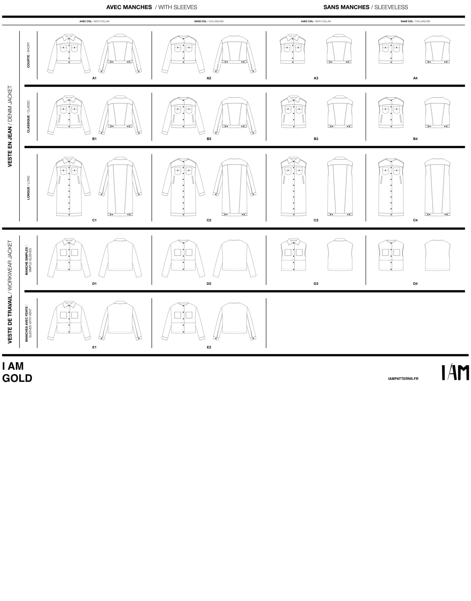 Gold Denim Jacket Sewing Pattern, I AM Patterns