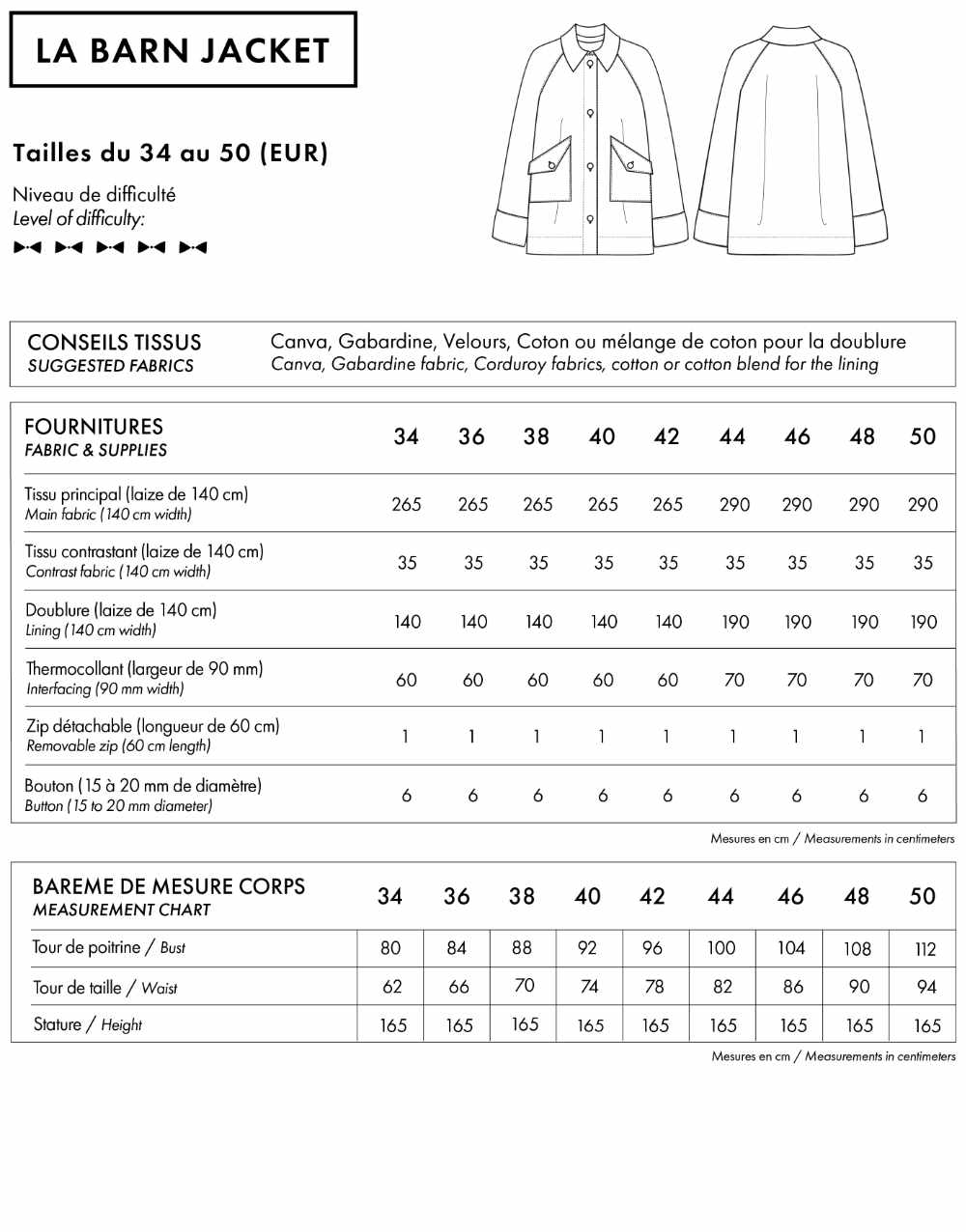 Fabric Suggestions: Canvas or Gabardine, thick or lighter depending on the season. LA Barn linings look great in stripes , cottons, or cotton blends. To really bring out its character, play with contrast by sewing the collar and cuffs with velvets - it's the detail that makes all the difference. Browse the gorgeous Atelier Brunette fabrics.