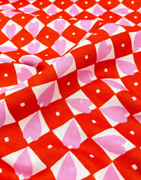 - Pink & Red Big Hearts Cotton Linen Fabric, Doops Designs / metre£32.00Unit price /Unavailable
