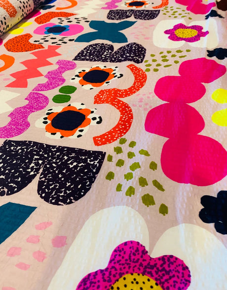 Doops Designs is a joyful textile label created by designer Jane Newham in the Byron Bay hinterland, Australia. From her home studio, Jane brings her artistic vision to life through colourful fabric designs inspired by nature, bold shapes and vibrant patterns.