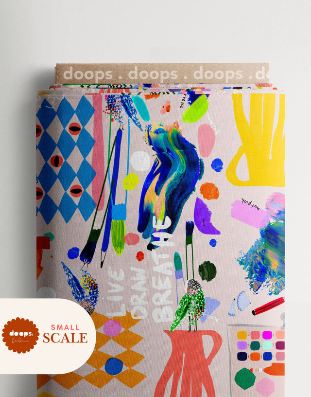 The Artist's Way Small Scale Cotton Linen Fabric, Doops Designs