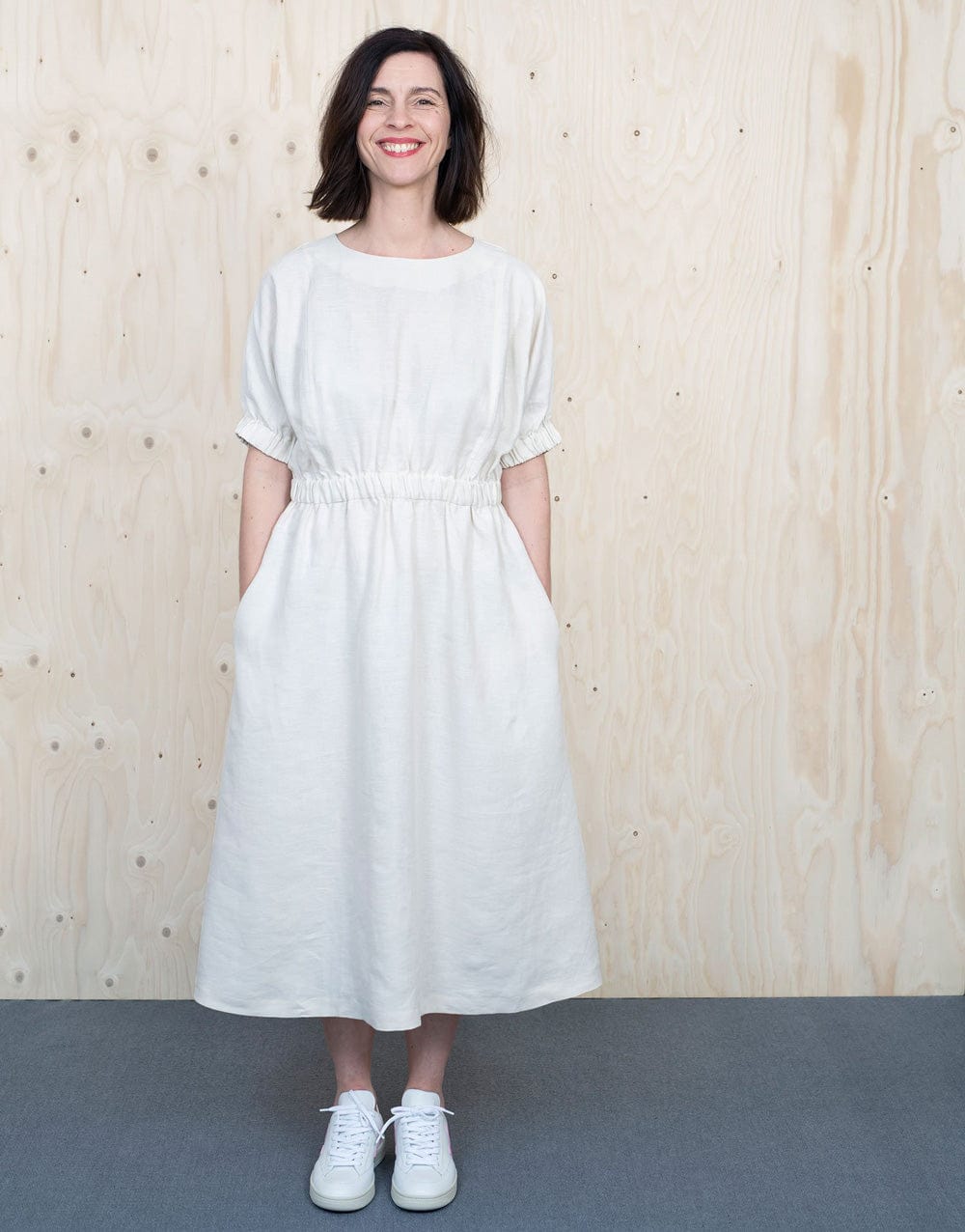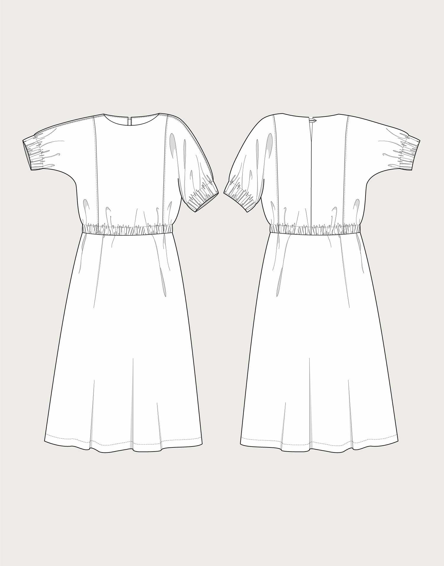 To get the right Cuff dress attitude use your body measurements for both chest, waist and seat when choosing size. If you've previously made the Cuff top with a perfect fit, we recommend that you use the same size for the dress.