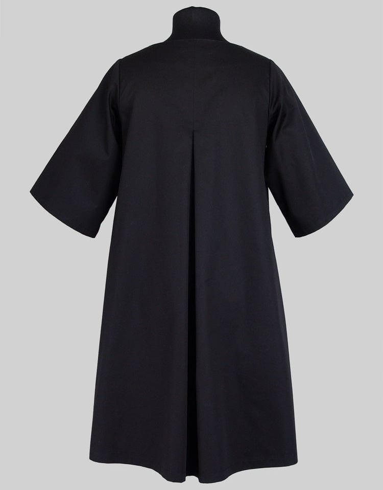 The Box pleat dress slips over the head, has deep box pleat at back, wide sleeves that can be rolled-up if you prefer, slit at sides and in-seam pockets.The A-line shape and deep back pleat makes this dress an easy fit, so use bust measurement only for sizing.