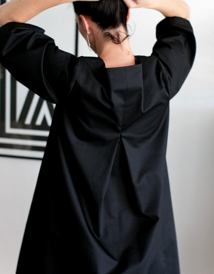 The Box pleat dress slips over the head, has deep box pleat at back, wide sleeves that can be rolled-up if you prefer, slit at sides and in-seam pockets. . . Read more
