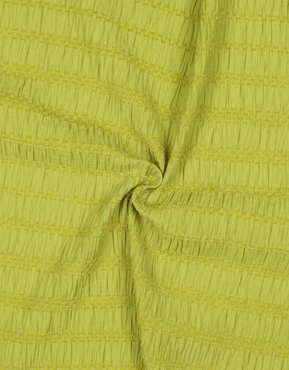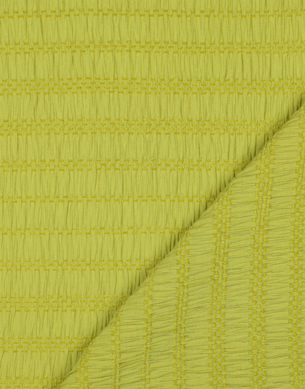 Beautifully soft with a gently puckered surface, this Lime Green Chenille Jacquard is a fresh take on a textured stretch fabric. With its shirred effect and subtle structure, it brings both movement and dimension to your makes, all wrapped up in an energising citrus hue.