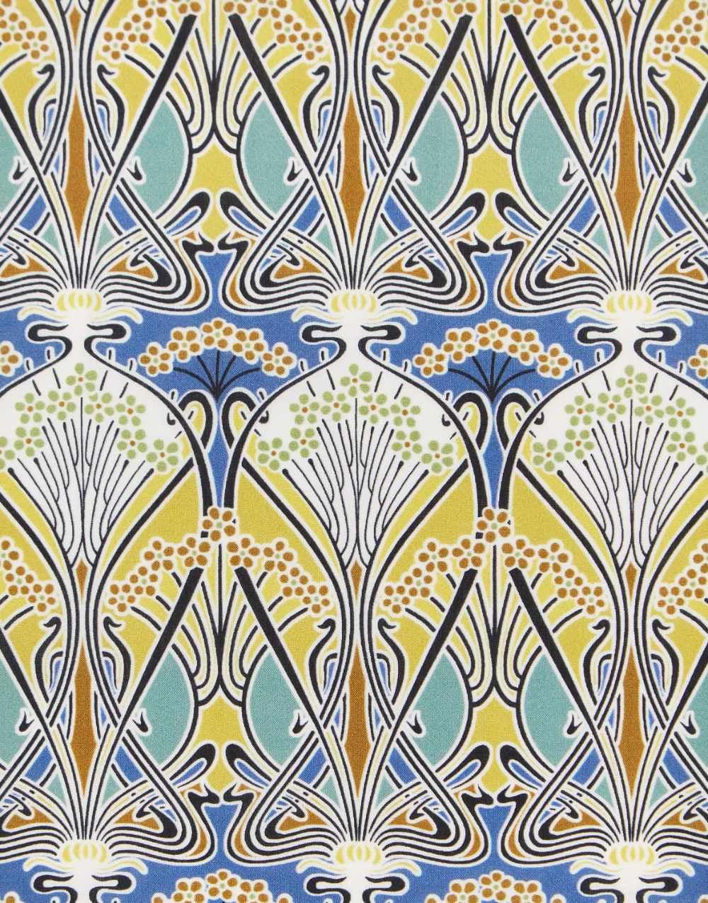 Considered to be Liberty’s most iconic Art Nouveau design, Ianthe was originally created as a wallpaper border by French artist R. Beauclair in c.1902. It was reworked for Liberty by the Haward Studio in 1967 and has appeared in a multitude of different designs and styles ever since.
