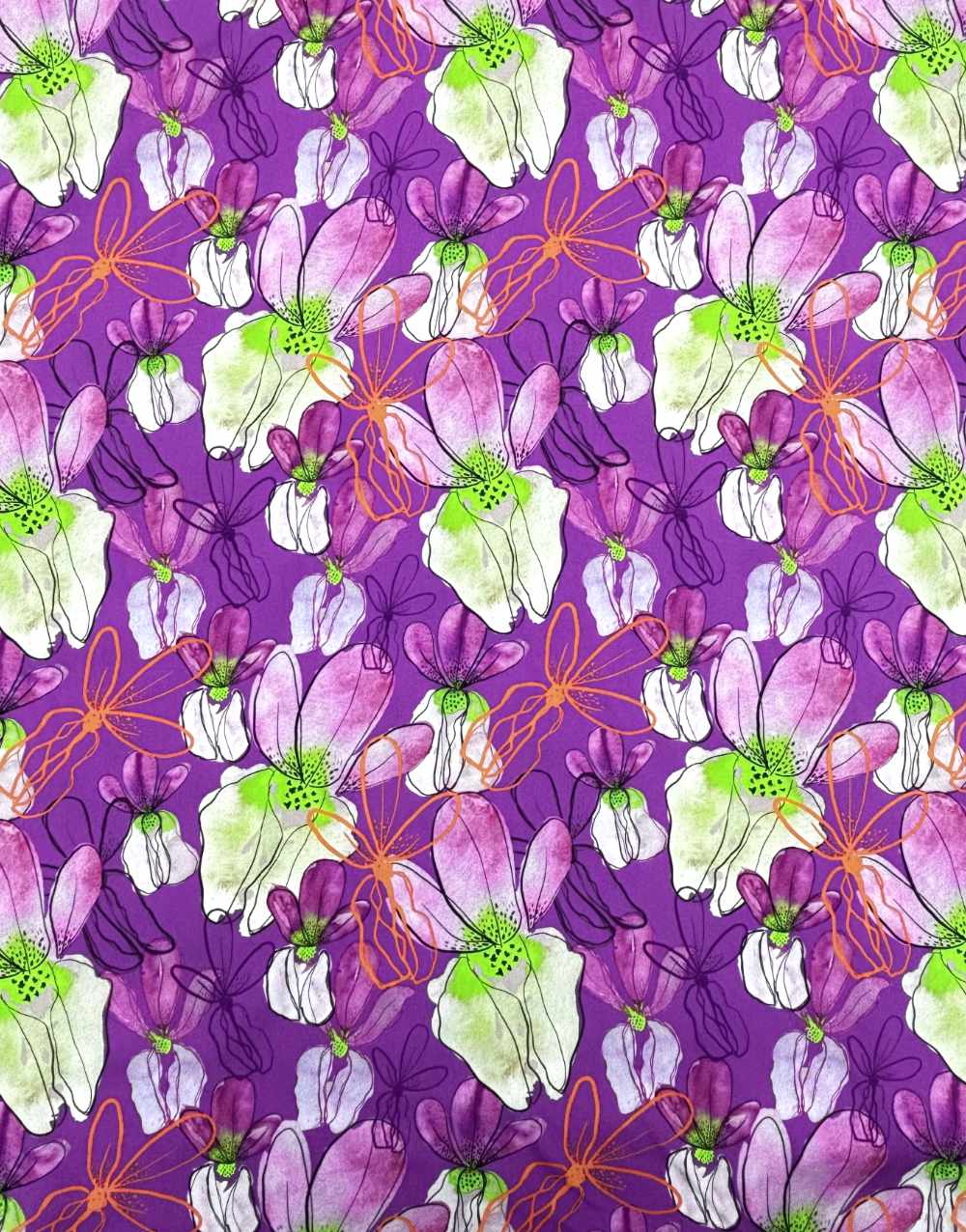 Bright and whimsical floral on a beautiful EcoVero Viscose. The fabric has a beautiful flow and is ideal for dressmaking.