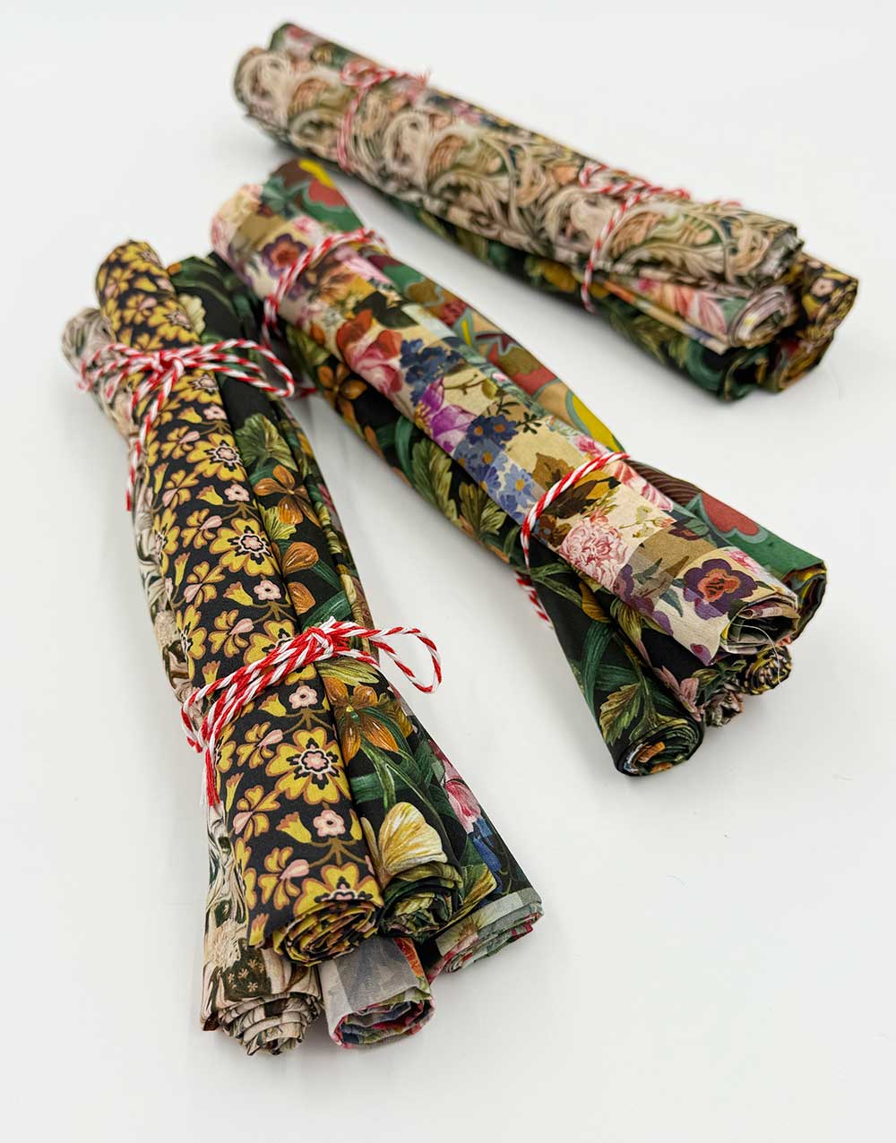 Each bundle includes: 5 x Liberty Tana Lawn® fat quarters, each measuring approximately 18″ x 26.5″ (45cm x 67cm).