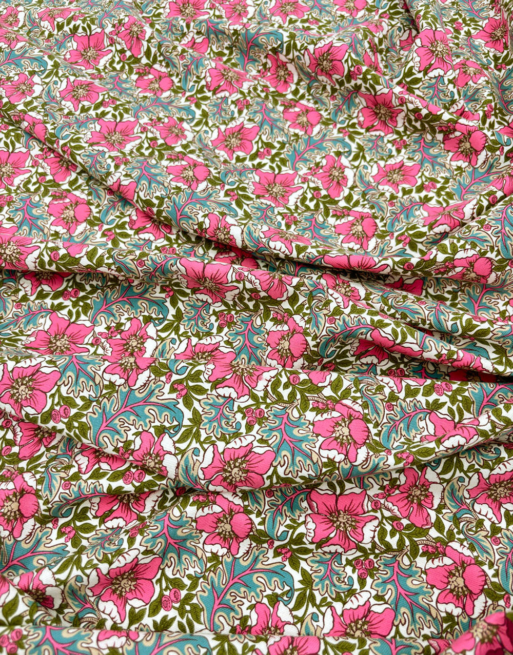Lantana is a signature Liberty fabric with a luxurious mid-weight feel. It blends wool and cotton for a finish that drapes beautifully while also providing a flattering structure.
