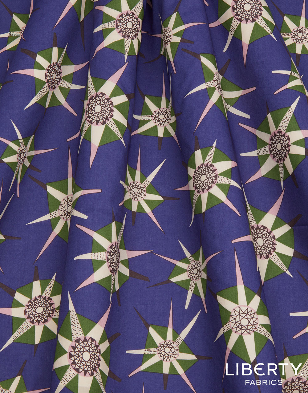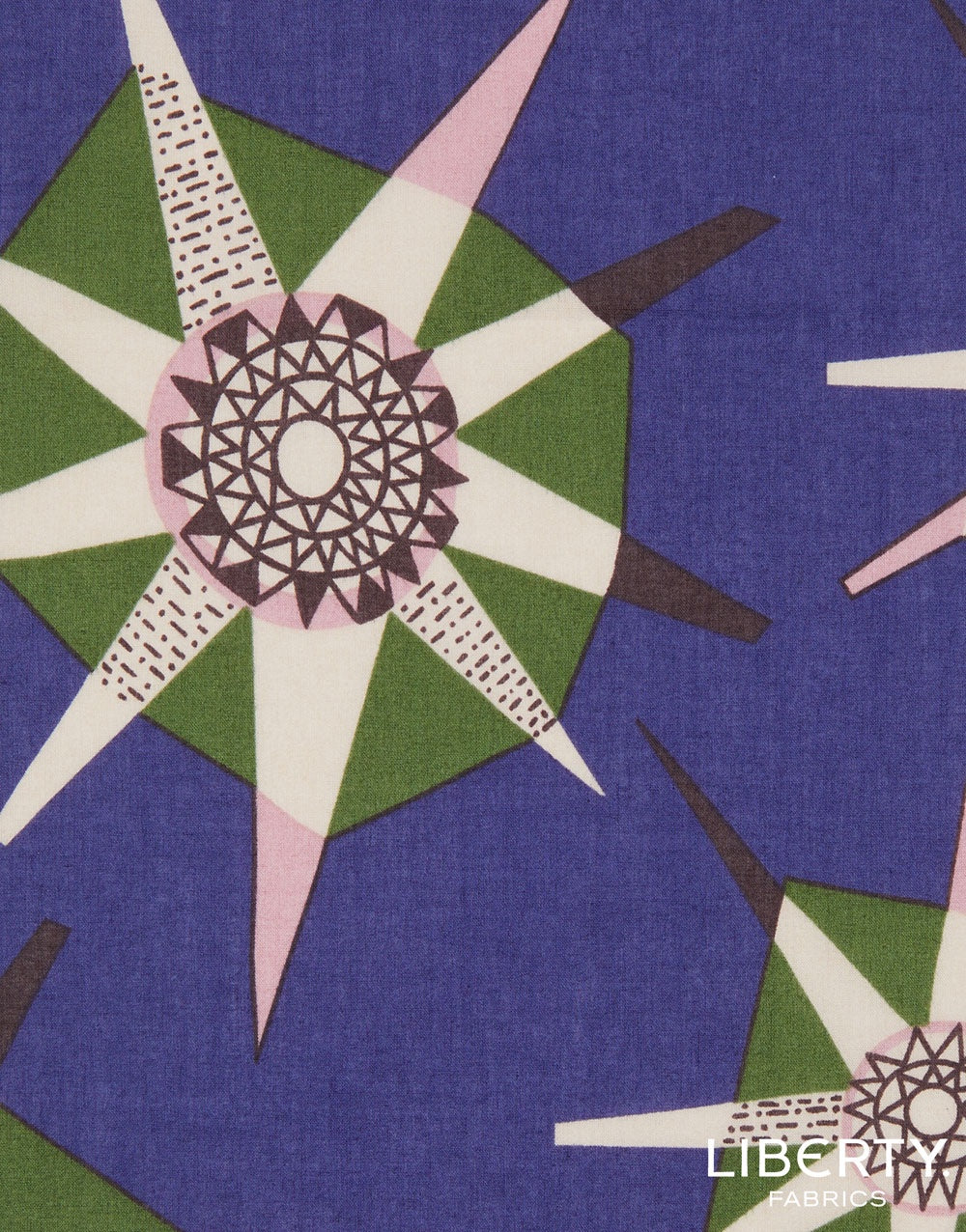 Meteor captures the forward-looking spirit of mid-century Modernism, based on an original Liberty fabric from 1956. Its sleek, angular shapes form dynamic geometric stars, echoing the era’s fascination with space exploration and futuristic design.