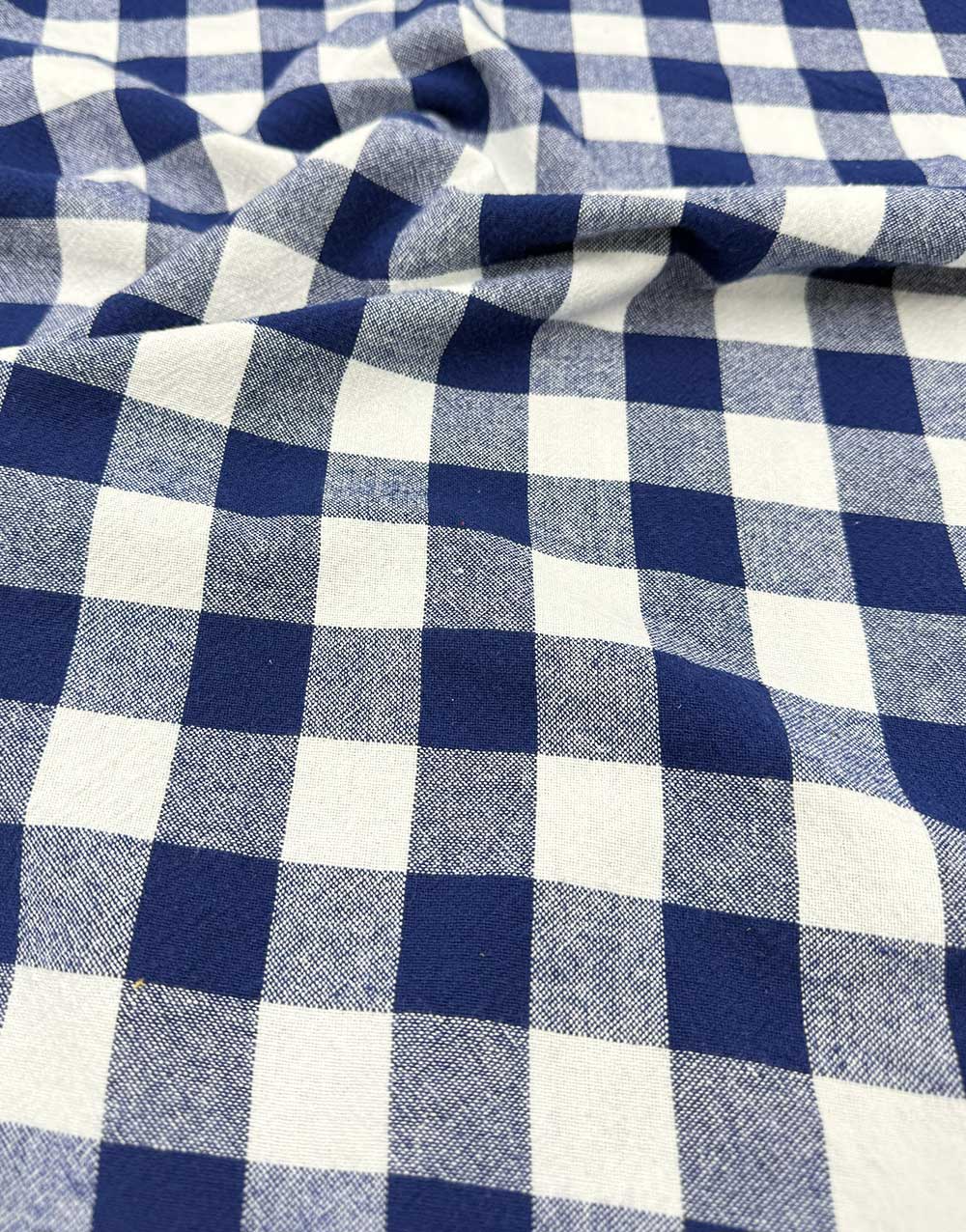 A fresh navy and white woven check that combines classic style with everyday ease. Crafted from 100% organic cotton, this soft and breathable fabric has a relaxed, floppy drape that’s perfect for easy shirts, laid back dresses and table linen. The traditional check design feels timeless and versatile, ideal for creating pieces with simple charm and enduring appeal.