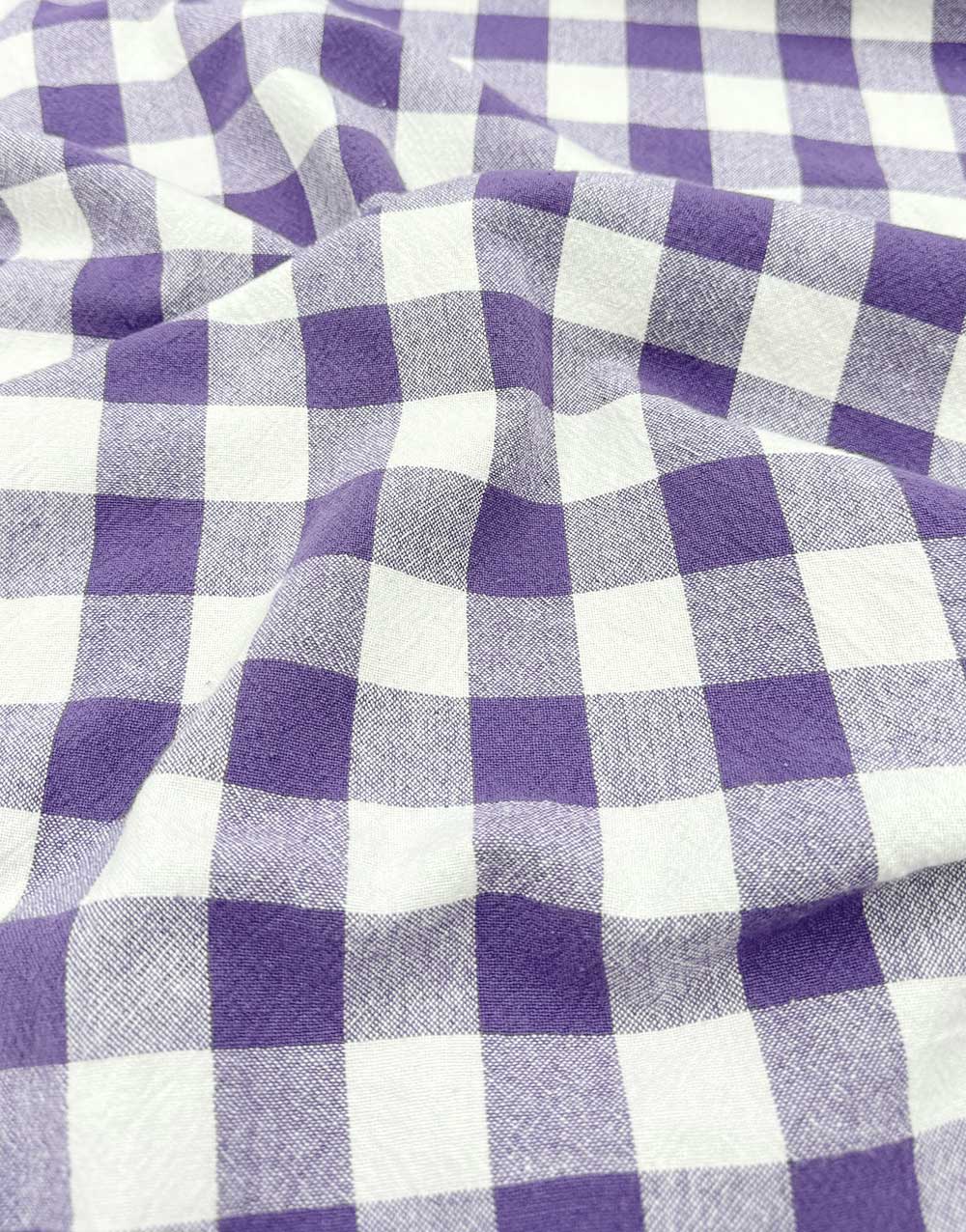 A gentle light purple and white woven check that adds a fresh, contemporary twist to a classic pattern. Soft, airy and with a lovely floppy drape, this organic cotton fabric is perfect for relaxed shirts, spring dresses and pretty table linen. Its soothing colour palette makes it ideal for projects with a calm, modern feel.