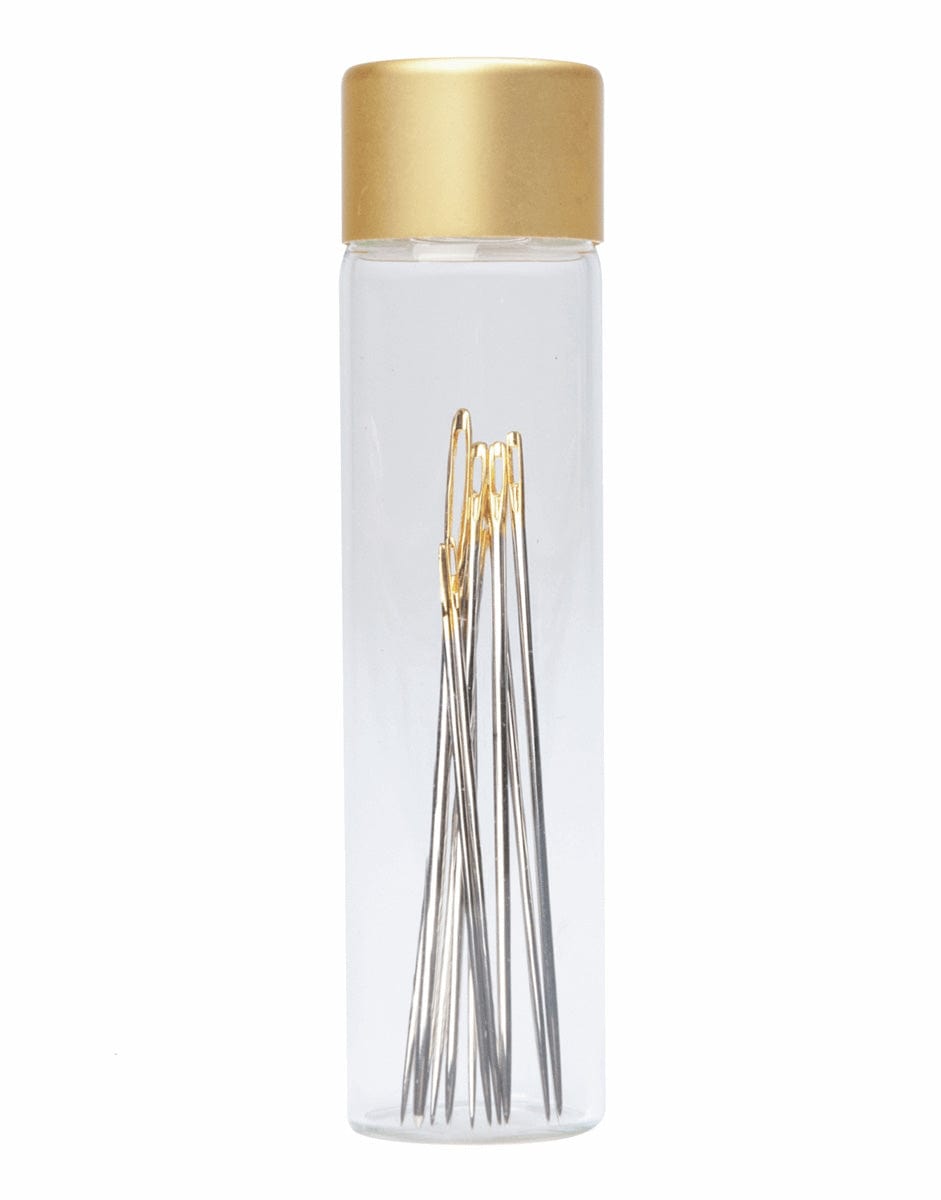 Household Assorted Sewing Needles in Glass Tube #19, 8, 5, 7, Hemline Gold