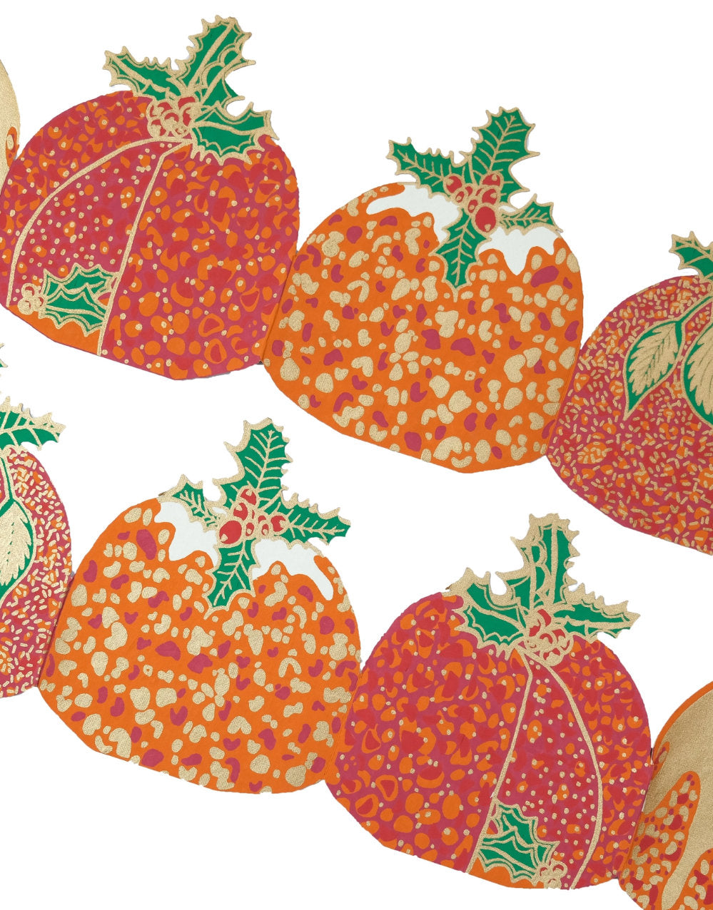 Add a touch of festive cheer with this delightful Christmas Pudding Concertina Garland! Featuring a playful repeat of Christmas puddings along its three-metre length, it’s perfect for brightening up your mantel, doorway or tree.