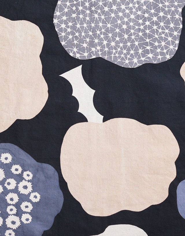 Echino Cloud Flower Cotton Linen Canvas Fabric, Black