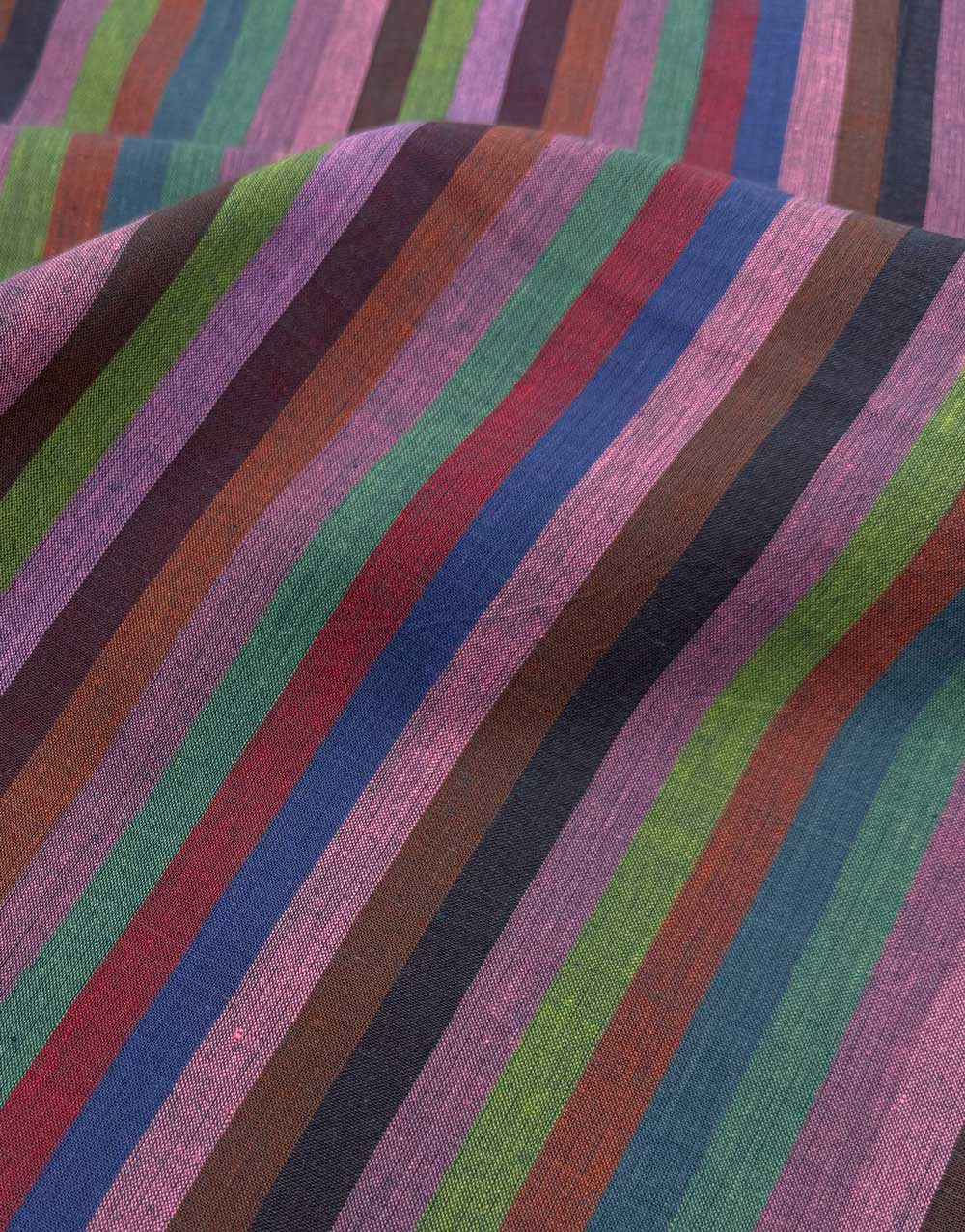 Deep, dramatic, and rich in colour, Dark Narrow Stripe showcases Kaffe Fassett’s mastery of moody palettes. A rhythmic repeat of narrow stripes in violet, forest green, plum, teal, indigo, and berry red makes this fabric both striking and sophisticated, with a subtle shot texture that catches the light.