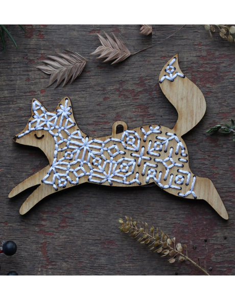 Fox Stitched Oak Ornament Kit, Kiriki Press
