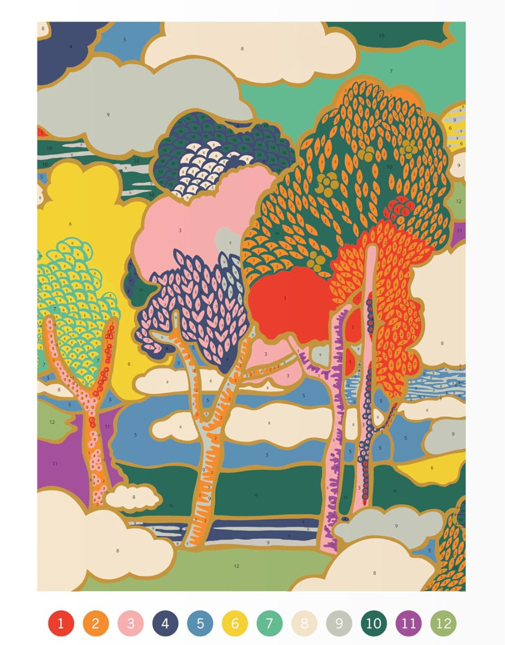 Printed on high-quality canvas and paired with non-toxic acrylic paints in a beautifully coordinated palette, the finished piece will make a striking addition to your home or a thoughtful handmade gift.