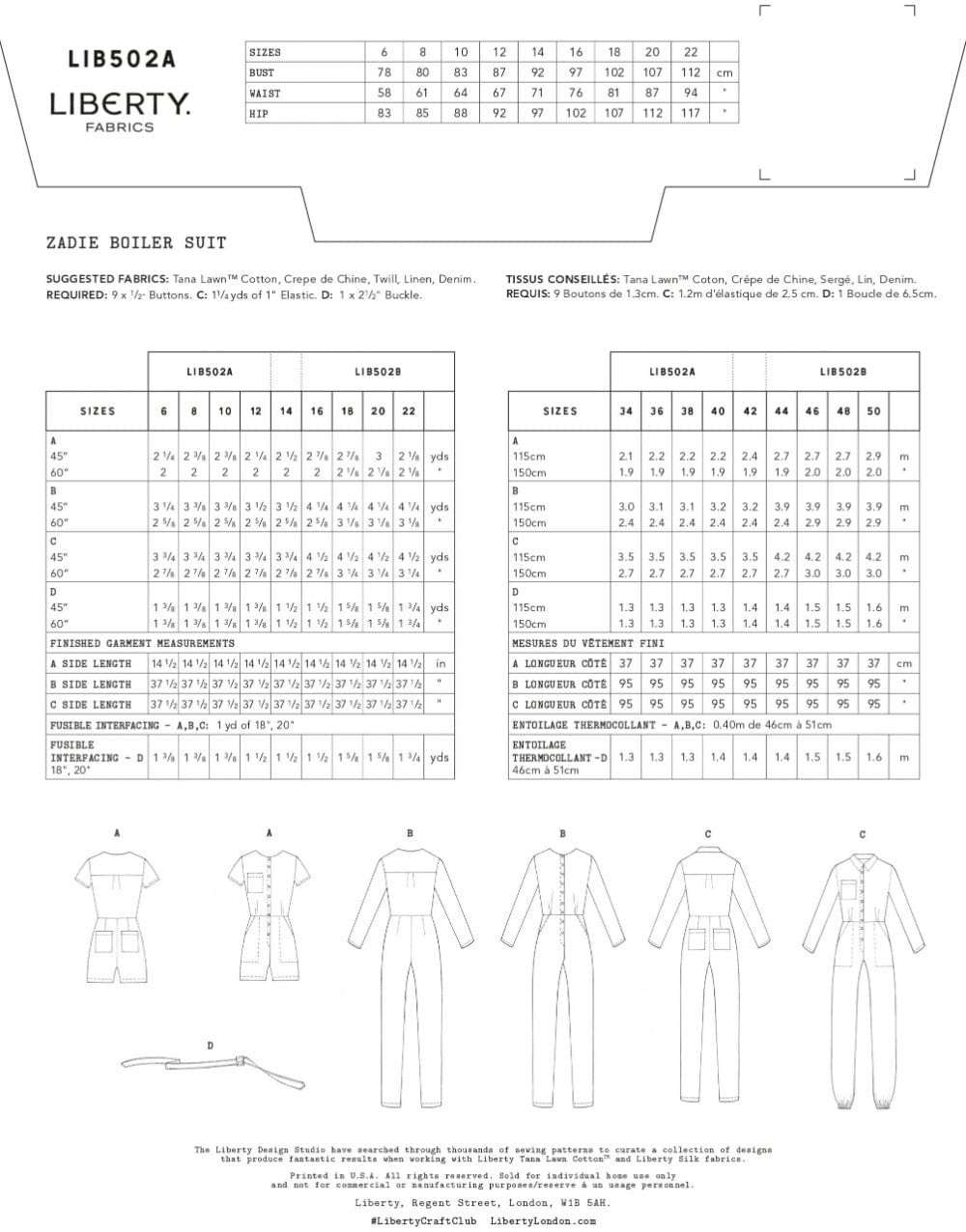 Zadie Boiler Suit Sewing Pattern, Liberty Fabrics