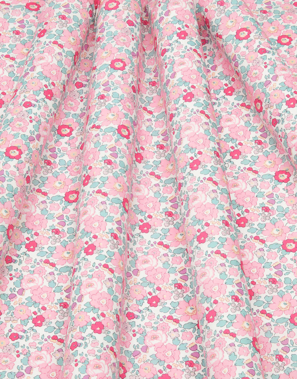 Betsy is a small, stylised floral created in 1933 by former Liberty designer ‘D.S.’, who was behind many iconic Liberty prints of the era. Appearing as part of the Classics Tana Lawn™ collection since 1982, Betsy features intricately shaded petals in soft jewel-tone colourways, enhanced with subtle bursts of metallic colour.