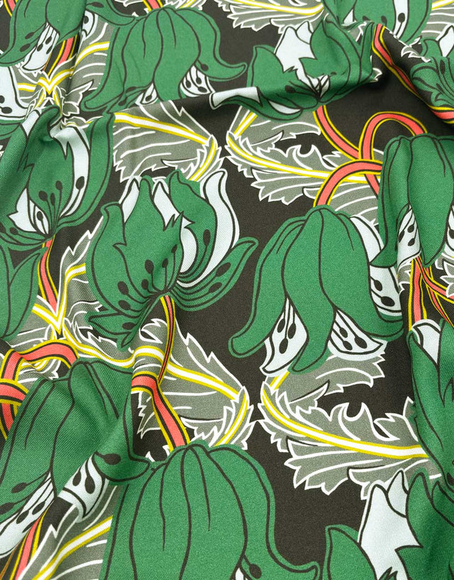 Championed by Liberty throughout the ages, the wonderful lily flower in its various forms was closely associated with the Aesthetic, Arts & Crafts as well as Art Nouveau movements. Inspired by a hand-painted artwork discovered in the Liberty archive, this large-scale portrait is a modern rendition of the original, featuring stylised blooms over an undulating, acanthus leaf trail.