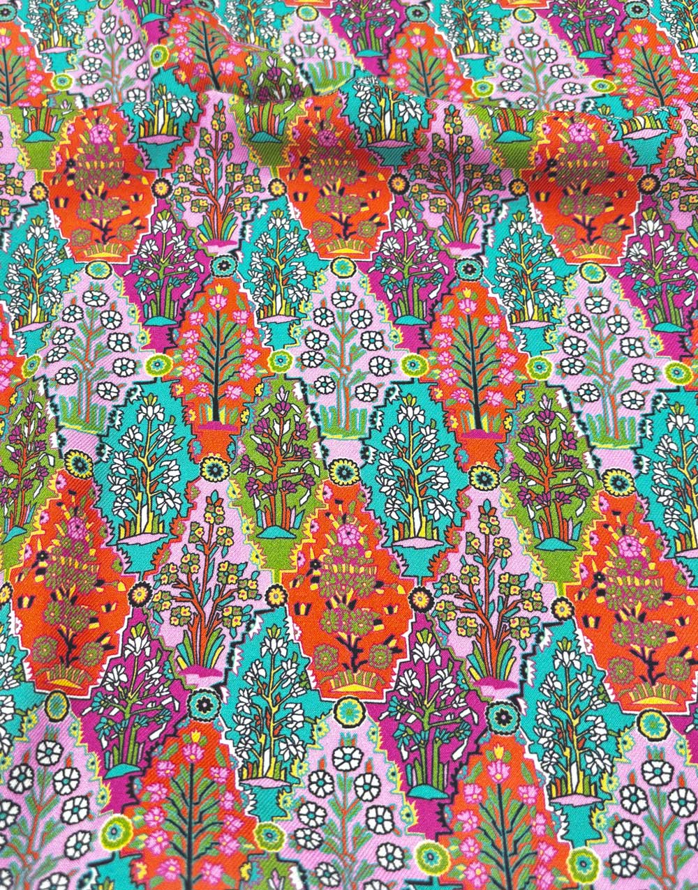 Drawing on the art of floristry, buds and blooms of all kinds are placed on pedestals- their splendour savoured and cherished through carefully structured configurations. Based on a hand-painted scarf print discovered in the Liberty archive, Puzzle Piece presents folk style florals in elegantly poised, diagonal formal arrangements.
