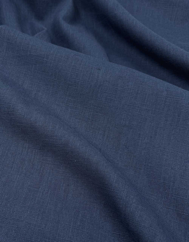 This is an exceptionally lovely linen-cotton blend in a rich indigo blue, washed for softness with a beautiful drape that makes it a dream to sew and wear. The cotton content adds smoothness and helps reduce creasing, making it more practical than pure linen without losing that effortlessly breezy look.