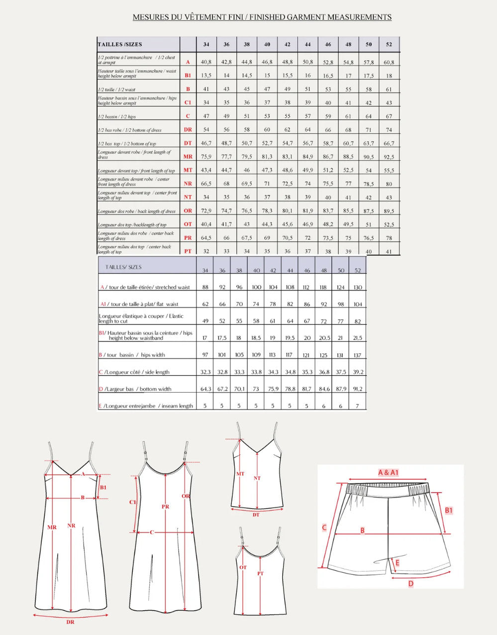 Slip into a pair of shorts as light and soft as a dream… Songe is the ultimate easy-to-sew, impossible-to-take-off style - your go-to for comfort with a touch of elegance. Choose between two versions: with or without Italian pockets. The waistband is flat at the front for a flattering silhouette, avoiding excess gathers over the stomach, while the elasticated back ensures ease and flexibility.
