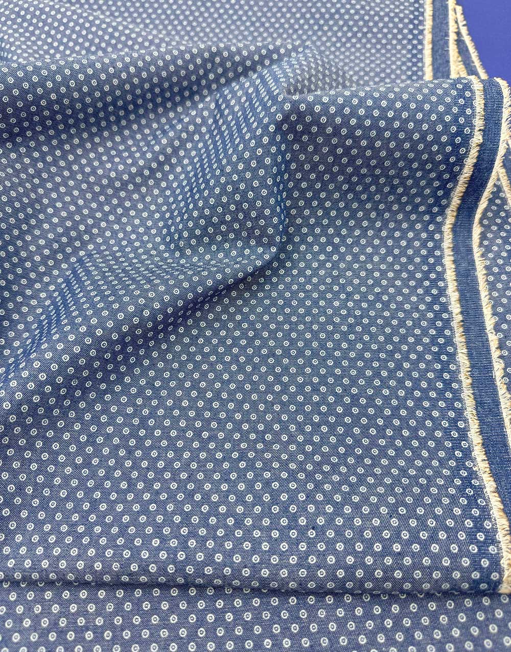 The kit includes a beautifully soft chambray fabric in classic indigo, scattered with neat woven white mini-dots for a subtle polka effect. Lightweight and breathable with a touch of texture, this fabric is a joy to sew and wear.
